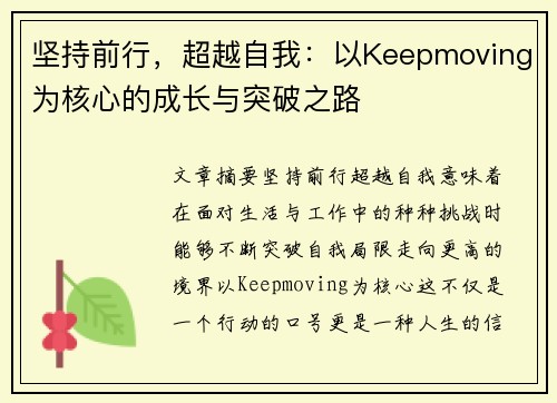 坚持前行,超越自我:以Keepmoving为核心的成长与突破之路