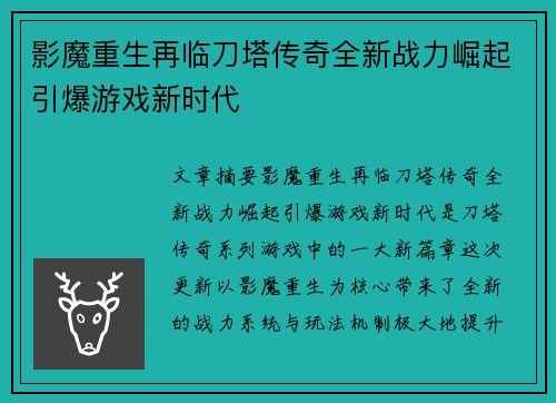影魔重生再临刀塔传奇全新战力崛起引爆游戏新时代