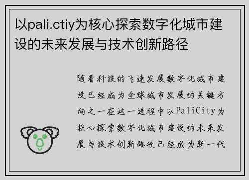 以pali.ctiy为核心探索数字化城市建设的未来发展与技术创新路径