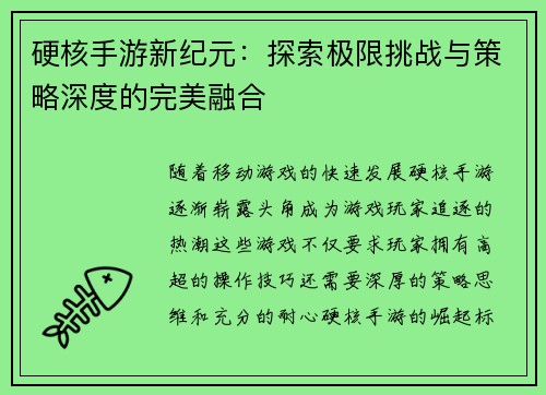 硬核手游新纪元:探索极限挑战与策略深度的完美融合